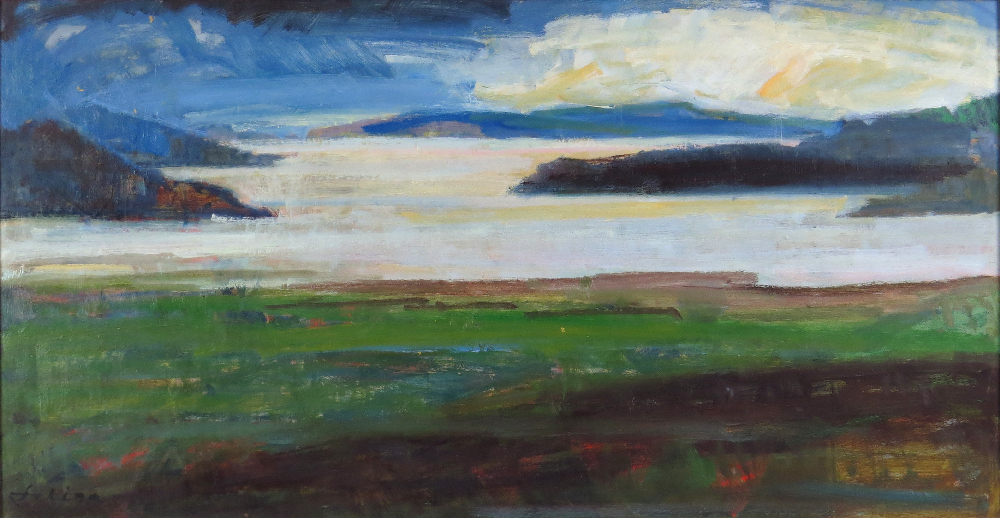 Názov diela: Šírava Technika: olej na sololite Značenie: vľavo dole Rozmery: 65 x 121 cm