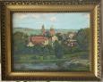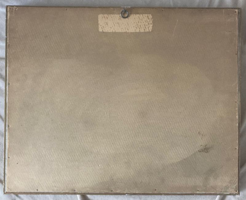 1932, olej na kartóne pod sklom, vnútorný rozmer 24 x 31,5 cm (s rámom 32,5 x 40 cm), signované vpravo dole, pôvodné rámovanie.