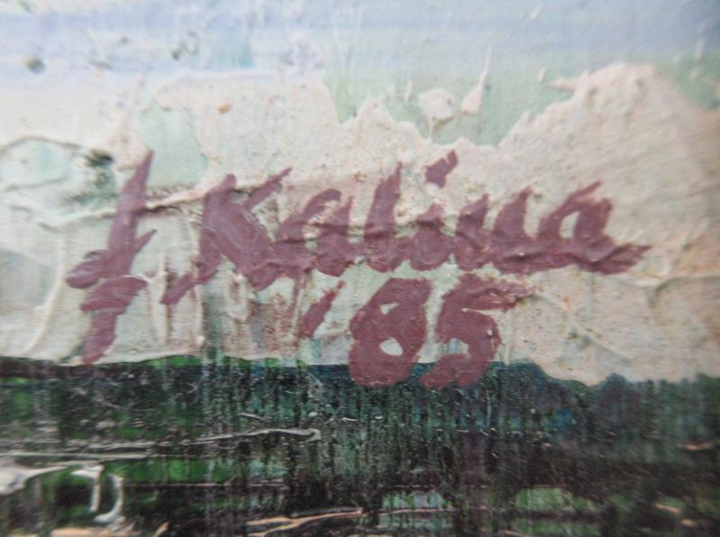 Značenie: vpravo dole "F.Kalina 85", zo zadnej strany diela autorský štítok