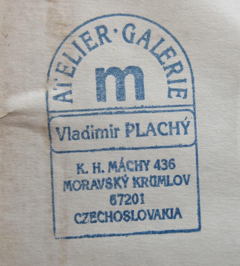 Značenie: vpravo dole "V. Plachý", zo zadnej strany autorská pečiatka