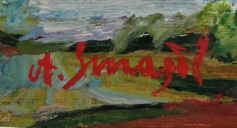 Značenie: vľavo dole "A.Smažil", zo zadnej strany diela autorský štítok