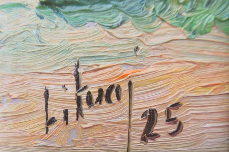 Značenie: vpravo dole, zo zadnej strany diela autorská pečiatka a popis diela autorovou rukou