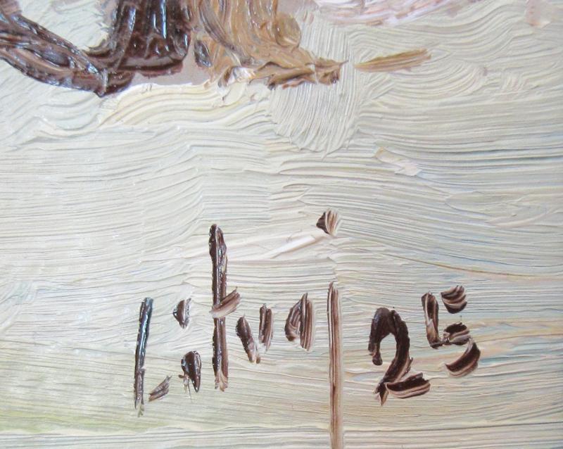 Značenie: vpravo dole, zo zadnej strany diela autorská pečiatka a popis diela autorovou rukou