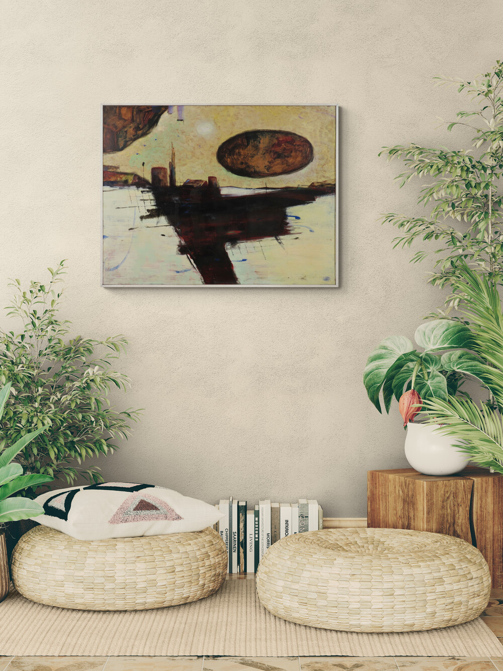 1 400 eur - Červený horizont, olej na sololite, 79,5 x 89,5 cm (DARTE-9.6.2024)