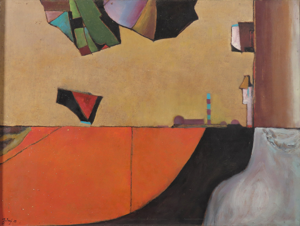 1 400 eur - Červený horizont, olej na sololite, 79,5 x 89,5 cm (DARTE-9.6.2024)