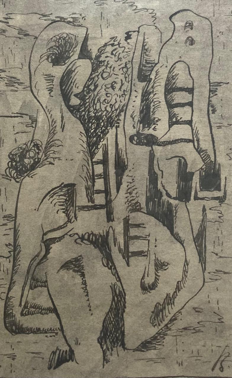 <p>Surealistická kompozícia - 1945, tuš na papieri, vnútorný rozmer kresby 20,5 x 14,5 cm, značené vpravo dole.</p>