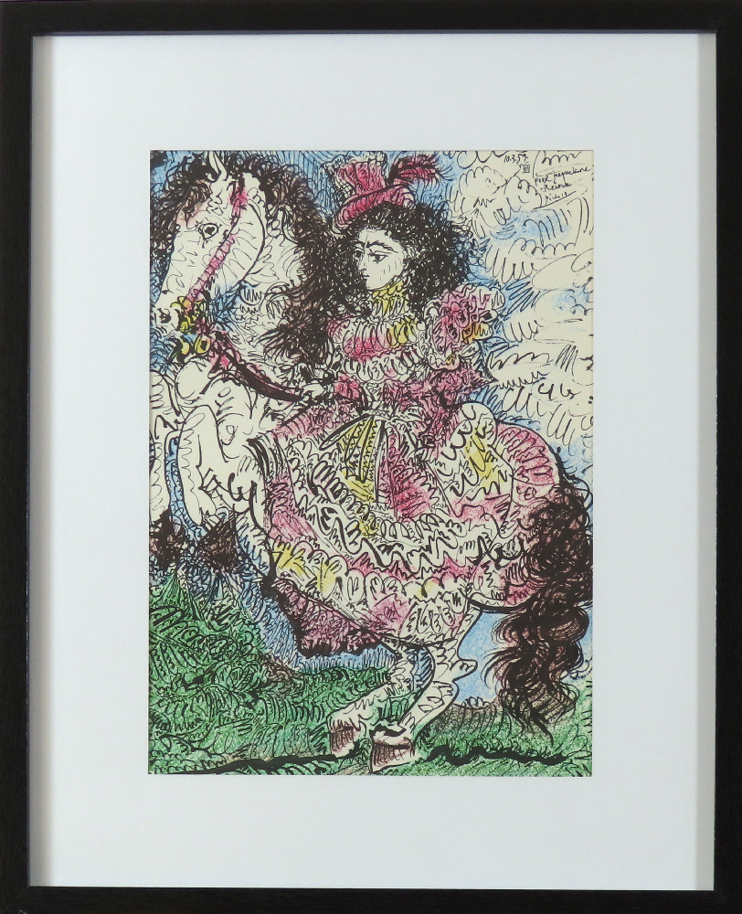 Rozmer diela s rámom: 52,3 x 42,3 cm Dielo pochádza zo známej kolekcie diel Pabla Picassa TOROS Y TOREROS .