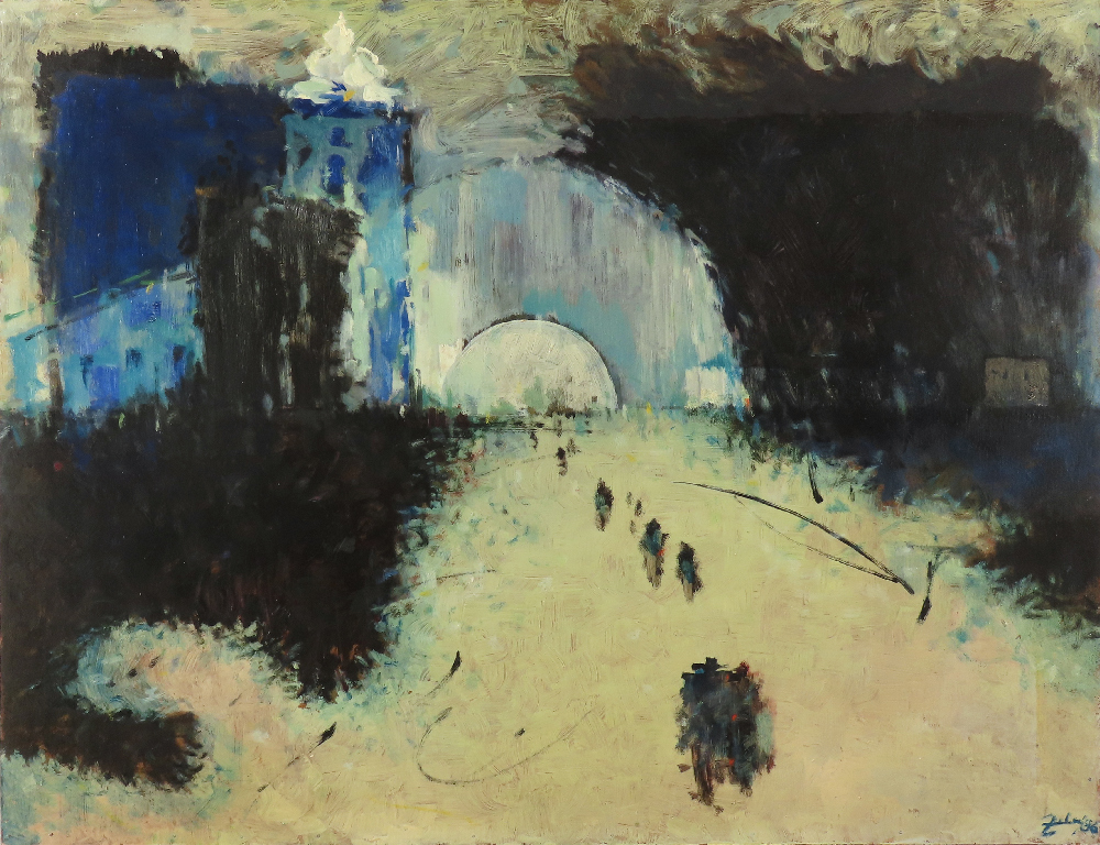 1600 eur - Námestie, olej na sololite, 90 x 70 cm ( Komorná VIP aukcia DARTE 21.11.2024 v Bratislave )