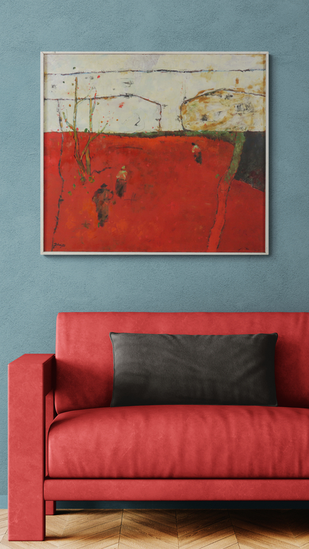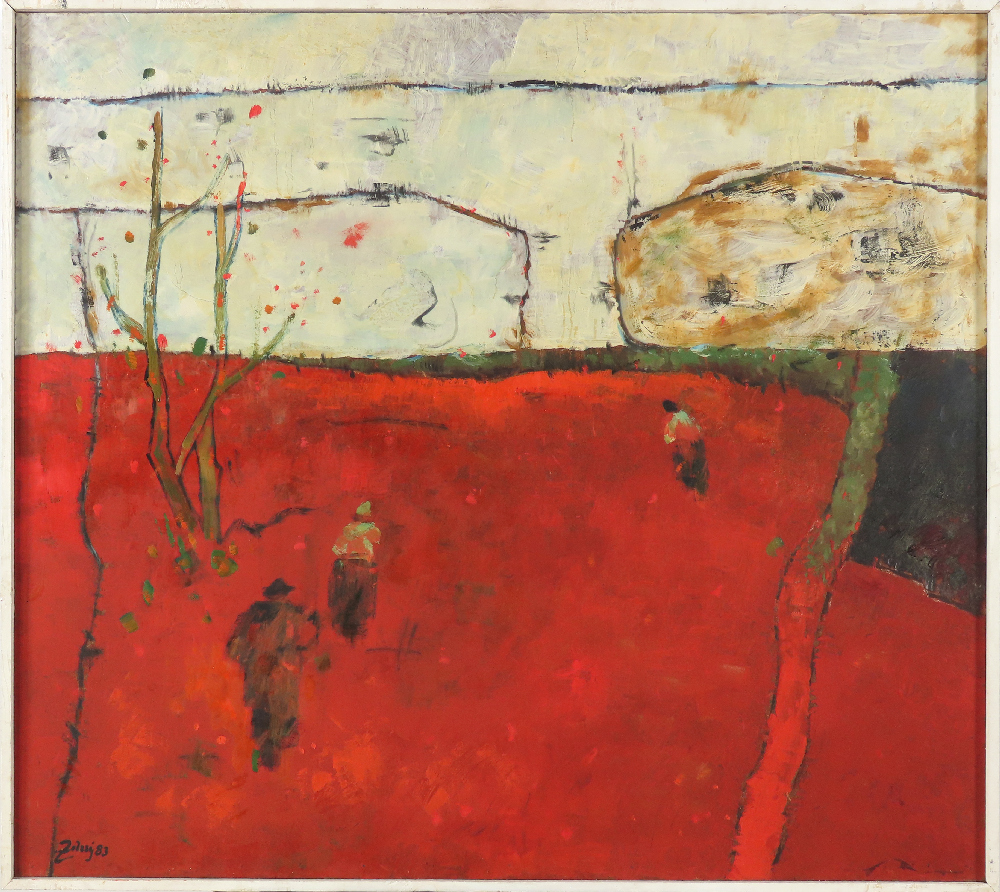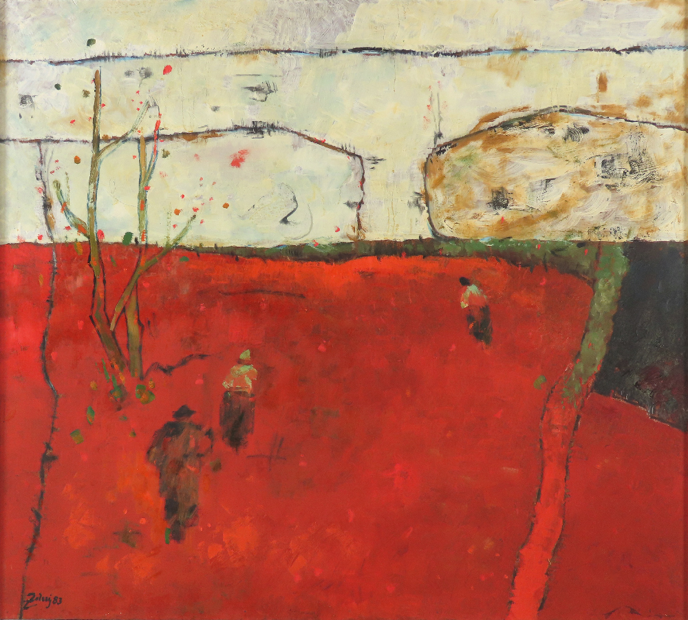 1 400 eur - Červený horizont, olej na sololite, 79,5 x 89,5 cm (DARTE-9.6.2024)