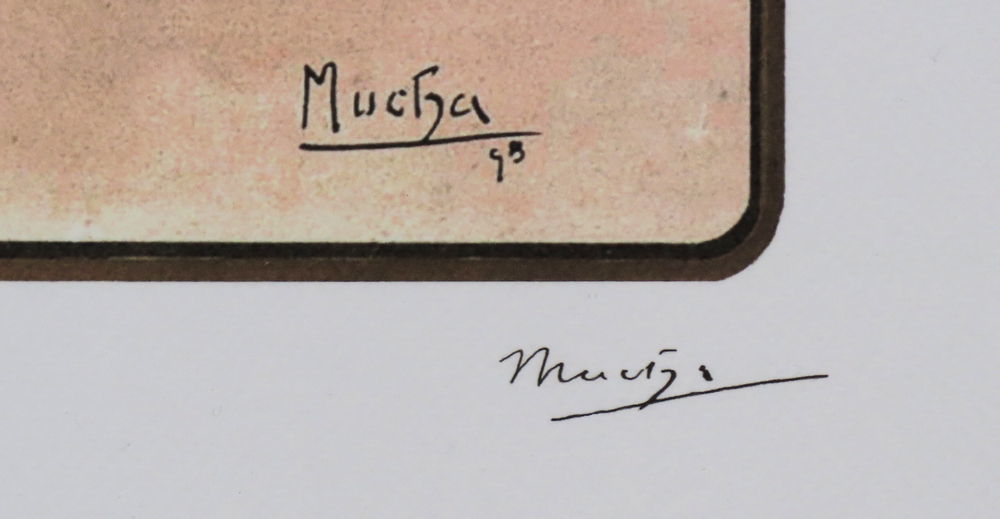 Alfonz Mucha sa narodil 24. júna 1860 v Ivančiciach, zomrel 24. júna 1939 v Prahe. Ako maliar bez profesionálneho školenia nastúpil okolo 1880 do maliarskych dielní divadelných dekorácií viedenskej firmy Kautsky-Brioschi-Burghart. 1881-1882 pôsobil na Morave u grófa Khuena, pre ktorého vyzdobil jedáleň zámku v Hrušovanoch. 1883-1885 pracoval na jeho zámku Gandegg pri Bolzane. Od 1885 študoval na Akadémii výtvarných umení v Mníchove. 1887 odchádza do Paríža, kde približne rok študuje na Académie Julian. Od 1888 výtvarník v slobodnom povolaní, živí sa ilustráciami pre parížske nakladateľstvá a časopisy. Otvára si vlastnú školu v ulici Grand Chaumiére. 1900 sa zúčastňuje prípravy svetovej výstavy v Paríži. 1902 doprevádza A. Rodina pri jeho českej ceste. 1904 prvá cesta do USA, striedavo pôsobí v Amerike a v Paríži. V USA bol činný aj ako pedagóg. 1910 sa vracia do Prahy. Súčasné obchodné renomé Alfonza Muchu je jednoznačné. Českou i svetovou umeleckou históriou je už dávnejšie považovaný za jednu z najpríznačnejších osobností internacionálneho secesného umenia, pre ktoré v Paríži okolo 1900 vznikol názov "Le styl Mucha". Muchovo umenie vyjadrovalo celkom bezprostredne problematiku dvoch umeleckých epoch. Bolo zároveň vyvrcholením akademického maliarstva a jeho snáh o naturalistický prepis skutočnosti i úsilia o redukovanú maliarsku štruktúru, založenú na štylizácii a ornamente. Mucha súčasne ukončuje vývin salónneho maliarstva 19. storočia a otvára cestu masového výtvarného prejavu. Jeho vrcholné práce sa vyjadrujú esoterickou filozofiou i prostredníctvom citovo komunikatívnych, všeobecne zrozumiteľných ikonických symbolov. Spojením prvkov českého umenia s jeho sklonmi k lyričnosti i dobovým príklonom k ľudovému umeniu a parížskej výtvarnej kultúry konca storočia našiel Alfonz Mucha unikátne umelecké vyjadrenie.Po roku1900 zaznamenávame postupné doznievanie umelcovej secesno-symbolickej invencie. Istým medzníkom sú návrhy pre parížsku svetovú výstavu 1900 (projekt stavby pavilónu človeka, maliarska výzdoba pavilónu Bosny a Hercegoviny). V Muchovej maliarskej tvorbe sa opätovne presadzuje popisnosť, úsilie o priamočiaru výpovednú hodnotu, návrat k ideám a mýtom histórie človeka a národa. Po návrate do Čiech (1910) sa sústredil na monumentálny cyklus "Slovanská epopej" pozostávajúci napokon z dvadsiatich nadrozmerných obrazov. Grafický design posledného Muchovho obdobia (plagáty, známky, bankovky), využíva pri zachovaní charakteristickej obrysovej línie predovšetkým účinnosť naturalistického detailu, zdielnosti námetu, nedosahuje však už kvalít Muchových prác z okolia 1900. Z literatúry: Alphonse Mucha et son oeuvre. La Plume, Paríž 1897; Mucha, J.: Aplhonse Mucha the Master of Art Nouveau. Praha 1967; Mucha, J.: Kankán se svatožáří. Praha 1969. Kotalík, J.: Česká secese. Kat. výstavy NG Praha. Hluboká n. Vltavou 1966; Mráz, B., Mrázová, M.: Secese. Praha 1971; Wittlich, P.: Česká secese. Praha 1982.
