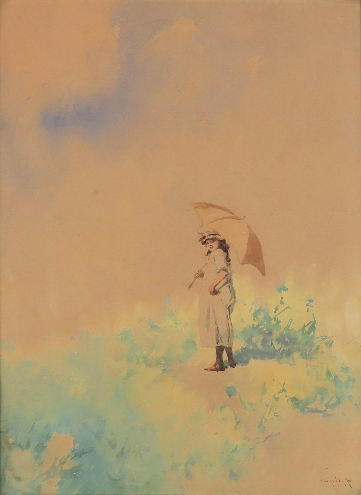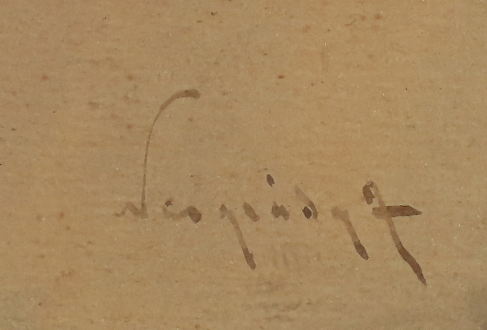 95 000 Sk - Zimná krajina (Poľovačka). Okolo 1905. Olejová tempera na papieri, 47x68 cm.