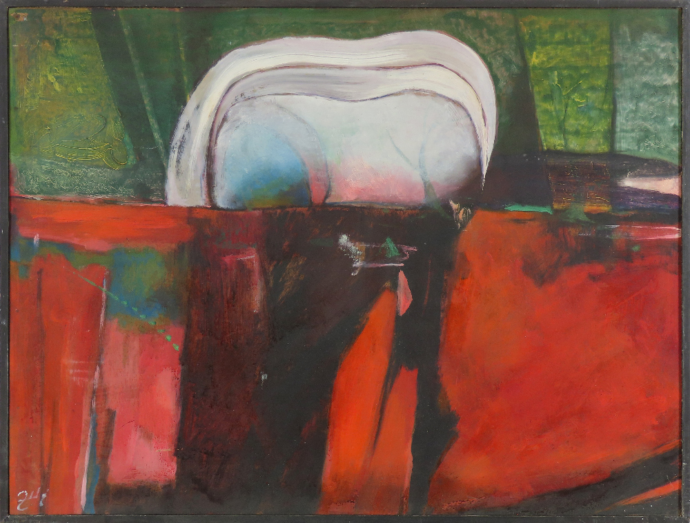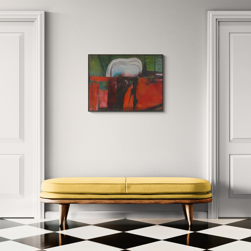 1 400 eur - Červený horizont, olej na sololite, 79,5 x 89,5 cm (DARTE-9.6.2024)