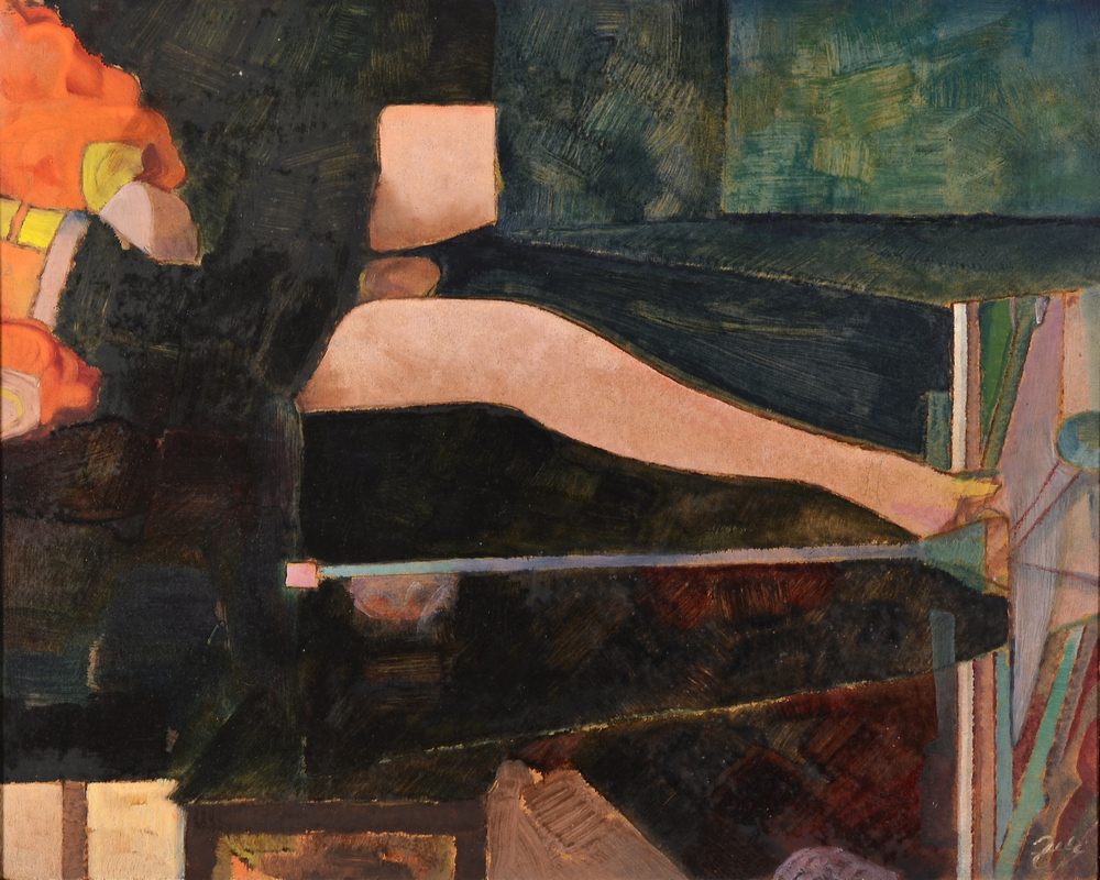 1 400 eur - Červený horizont, olej na sololite, 79,5 x 89,5 cm (DARTE-9.6.2024)