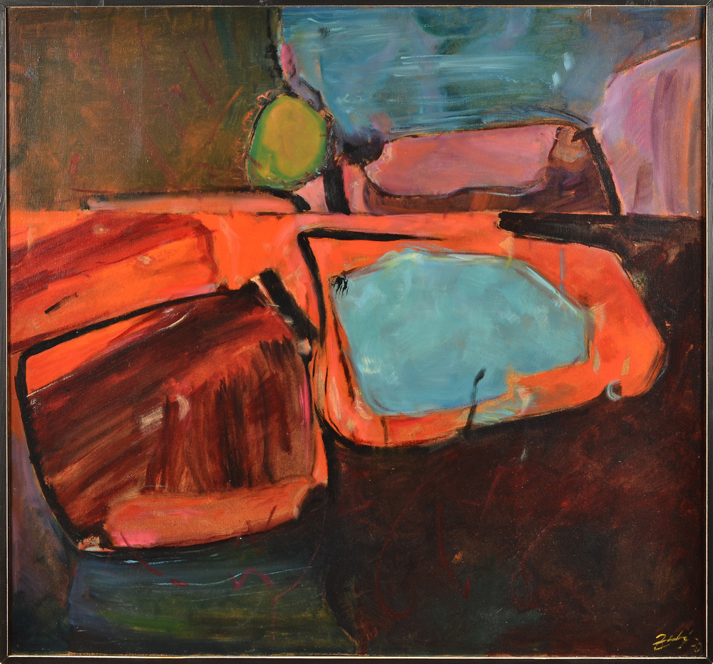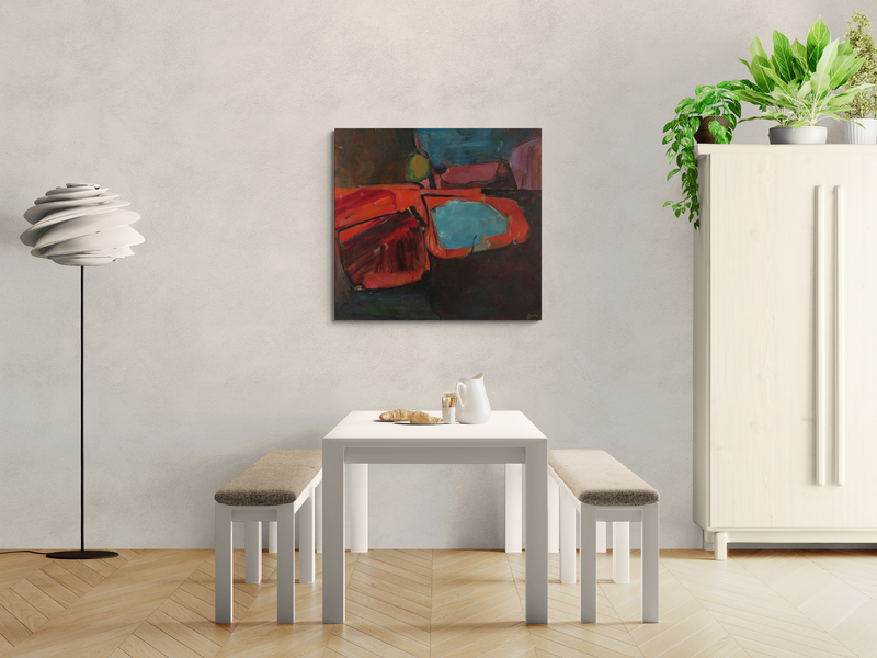 1 400 eur - Červený horizont, olej na sololite, 79,5 x 89,5 cm (DARTE-9.6.2024)