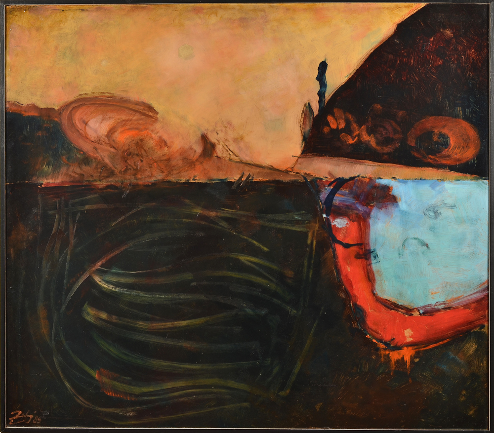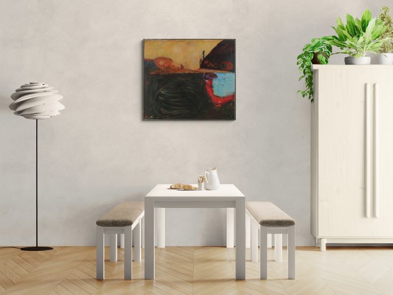 1 400 eur - Červený horizont, olej na sololite, 79,5 x 89,5 cm (DARTE-9.6.2024)