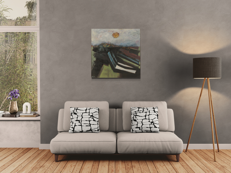 1 400 eur - Červený horizont, olej na sololite, 79,5 x 89,5 cm (DARTE-9.6.2024)