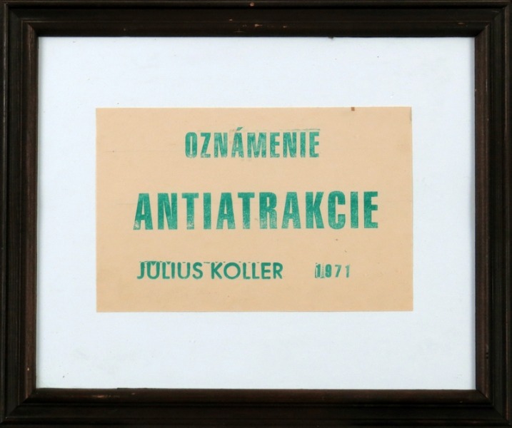 Július Koller sa narodil 28. 5. 1939 v Piešťanoch. 1959-65 študoval na Vysokej škole výtvarných umení v Bratislave Patrí ku kmeňovým postavám slovenského konceptuálneho umenia a v poslednom období sa mu dostáva na slovenské pomery až nevídaného uznania. Patrí k prvým výtvarníkom, ktorí vystavujú na medzinárodnej prehliadke na benátskom bienále (v rámci medzinárodného kurátorského výberu) Sny a konflikty v sekcii Utopické stanoviská. Do sféry Kollerovho záujmu sa dostáva nie umenie, ale kultúra, ktorá má väčšiu právomoc, väčší záber. Jeho dielo je vytrvalým hľadaním priestoru pre umenie. Jeho prvé písmové kompozície z rokov 1962–1963 sú vlastne ideogramatickým prepisom krajinárskeho motívu. Vystavoval individuálne v Bratislave (1965, 1967, 1968, 1969, 1974, 1990, 1991-2, 1993, 1995, 1997, 1999), Žiline (1991, 1992), Banskej Bystrici (1991–92), kolektívne v Bratislave, Brne, Paríži, Sao Paulo, Amsterdame, Varšave, Budapešti, Moskve, Berlíne, Prahe, Sydney, New Yorku. Z literatúry: Šesťdesiate roky. SNG, Bratislava, 1995; Hrabušický, A.: Július Koller,