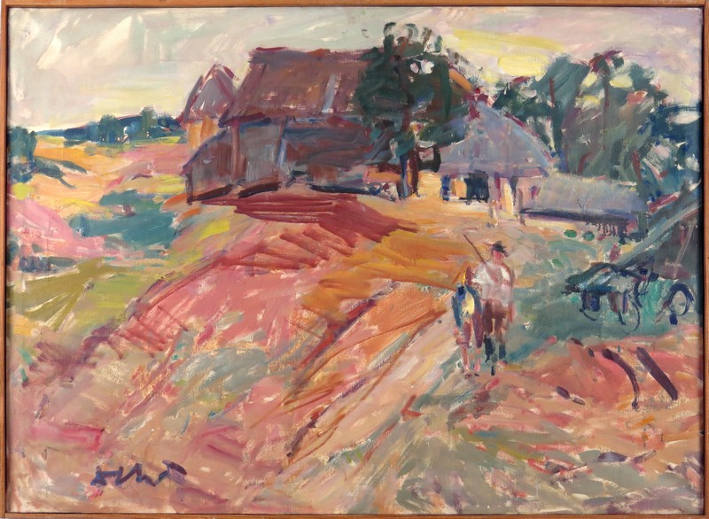 13 000 Sk - Dedina. Olej na preglejke, 33x73 cm. (DARTE -18.12.2005)