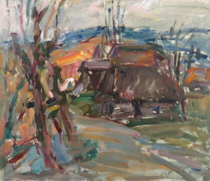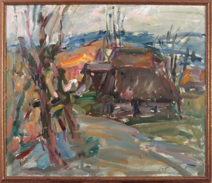 13 000 Sk - Dedina. Olej na preglejke, 33x73 cm. (DARTE -18.12.2005)