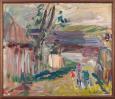 13 000 Sk - Dedina. Olej na preglejke, 33x73 cm. (DARTE -18.12.2005)