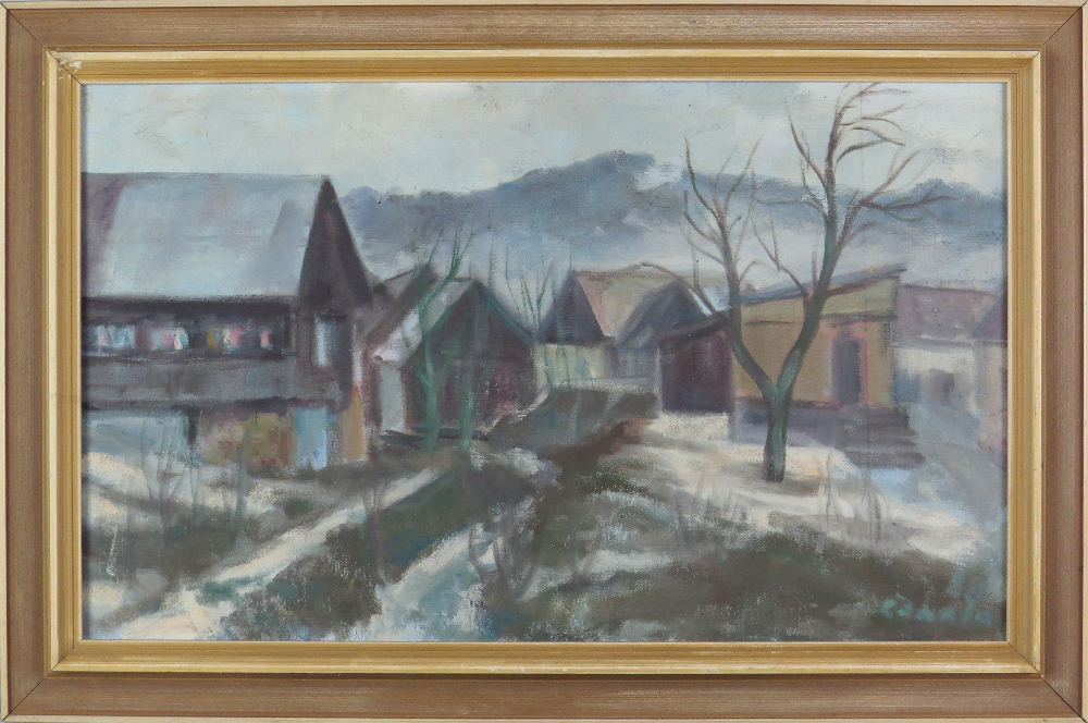 12 000 Sk - Nad dedinou. Olej na plátne, 60 x 80 cm (DARTE - 25.6.2006)