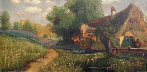48 000 - Sk Dojenie oviec. 1908. Olej na plátne. 49 x 66 cm.
