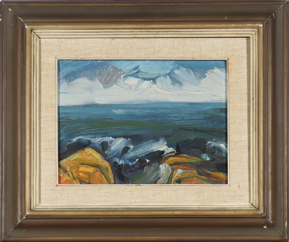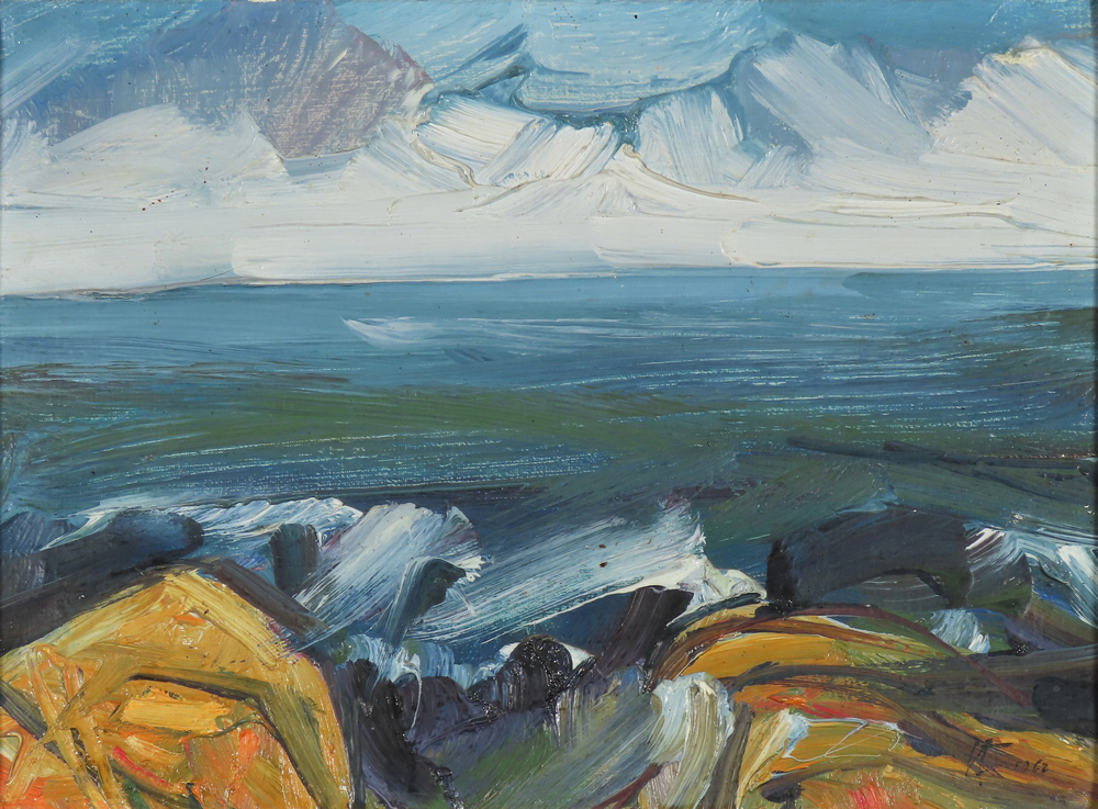 45 000 Sk,- Dve makrely. 1959. Olej na kartóne. 21 x 30 cm.