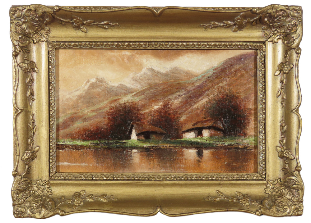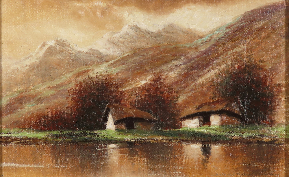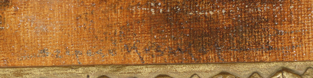 2 058,02 € - Pri rieke Poprad. Okolo 1910. Olej na plátne. 69 x 75 cm.