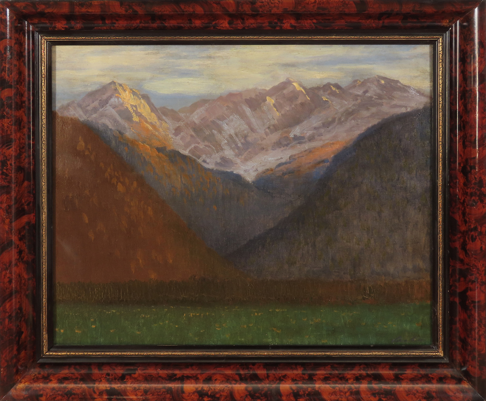250 000 Sk,- Tatranské vodopády. Okolo 1900. Olej na plátne. 250x140 cm.