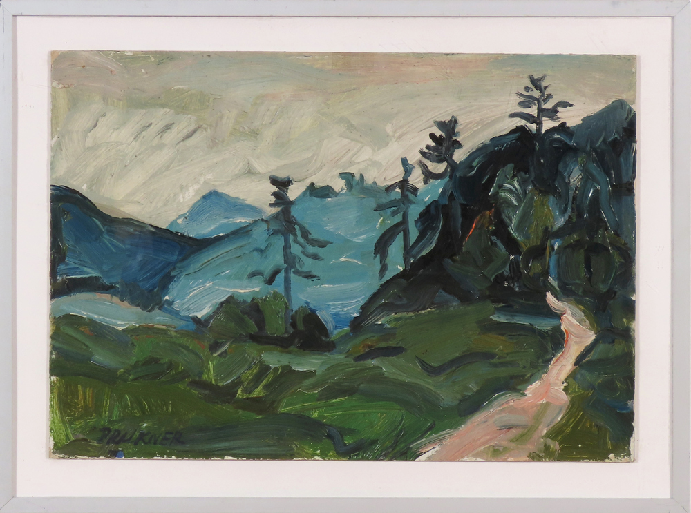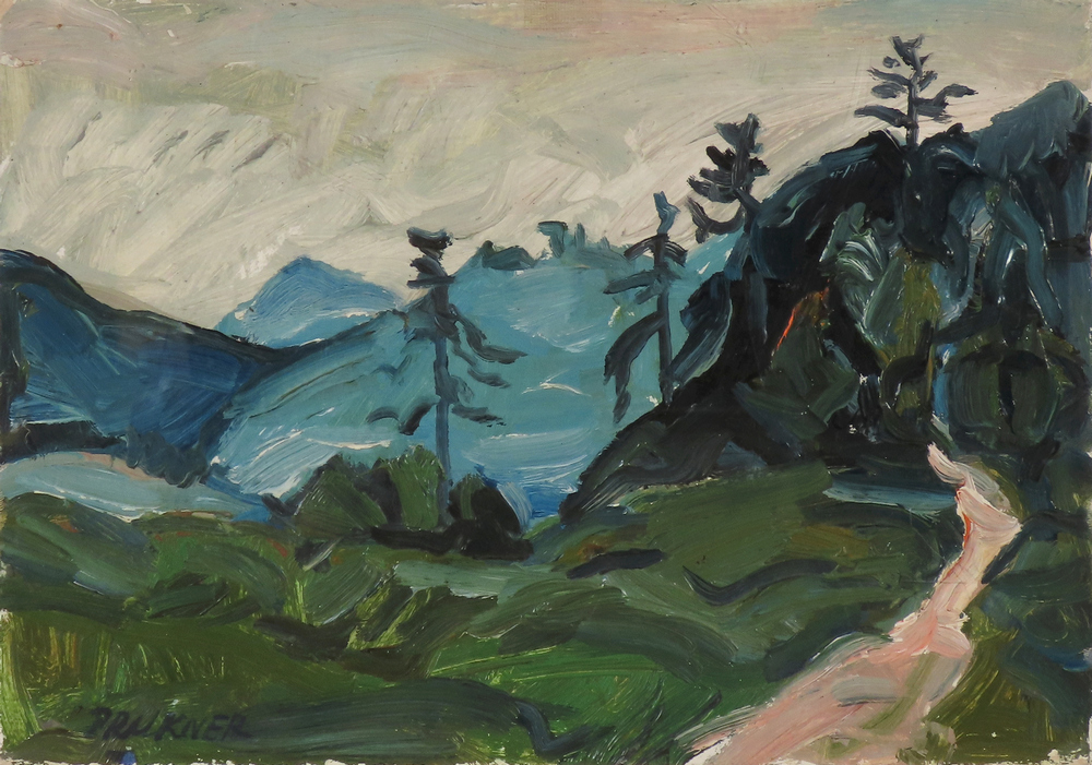22 000 Sk - Dedinská ulička. Okolo 1965. Olej na kartóne. 34x50 cm.