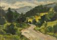 22 000 Sk - Dedinská ulička. Okolo 1965. Olej na kartóne. 34x50 cm.