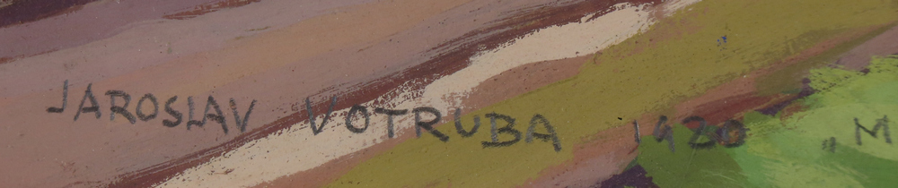 Jaroslav Votruba sa narodil 10. 4. 1889 v Prahe-Uhrínevsi, zomrel 21. 7. 1971 v Kežmarku. 1908-1912 študoval na Umelecko-priemyselnej škole v Prahe (prof. Schikaneder, Priesler). Pôsobil ako profesor kreslenia v Olomouci, Brne a v Prostějove, od 1919 na štátnej reálke v Bratislave. Po pracovnom úraze prešiel do invalidity, venoval sa len výtvarnej a organizátorskej práci, striedavo býval v Bratislave a Starom Smokovci. Ešte ako študent putoval po Slovensku, 1912 prešiel Bavorsko, 1914 bol v Lipsku a dva mesiace vo Viedni. 1925 maľoval na Orave, od 1936 trávieval podstatnú časť roka v Tatrách. Z literatúry: Ritter, W.: Jaroslav Votruba. Bratislava 1944; Wagner, V.: Nové slovenské maliarstvo. Bratislava 1944; Váross, M.: Slovenské výtvarné umenie 1918-1945. Bratislava 1960.