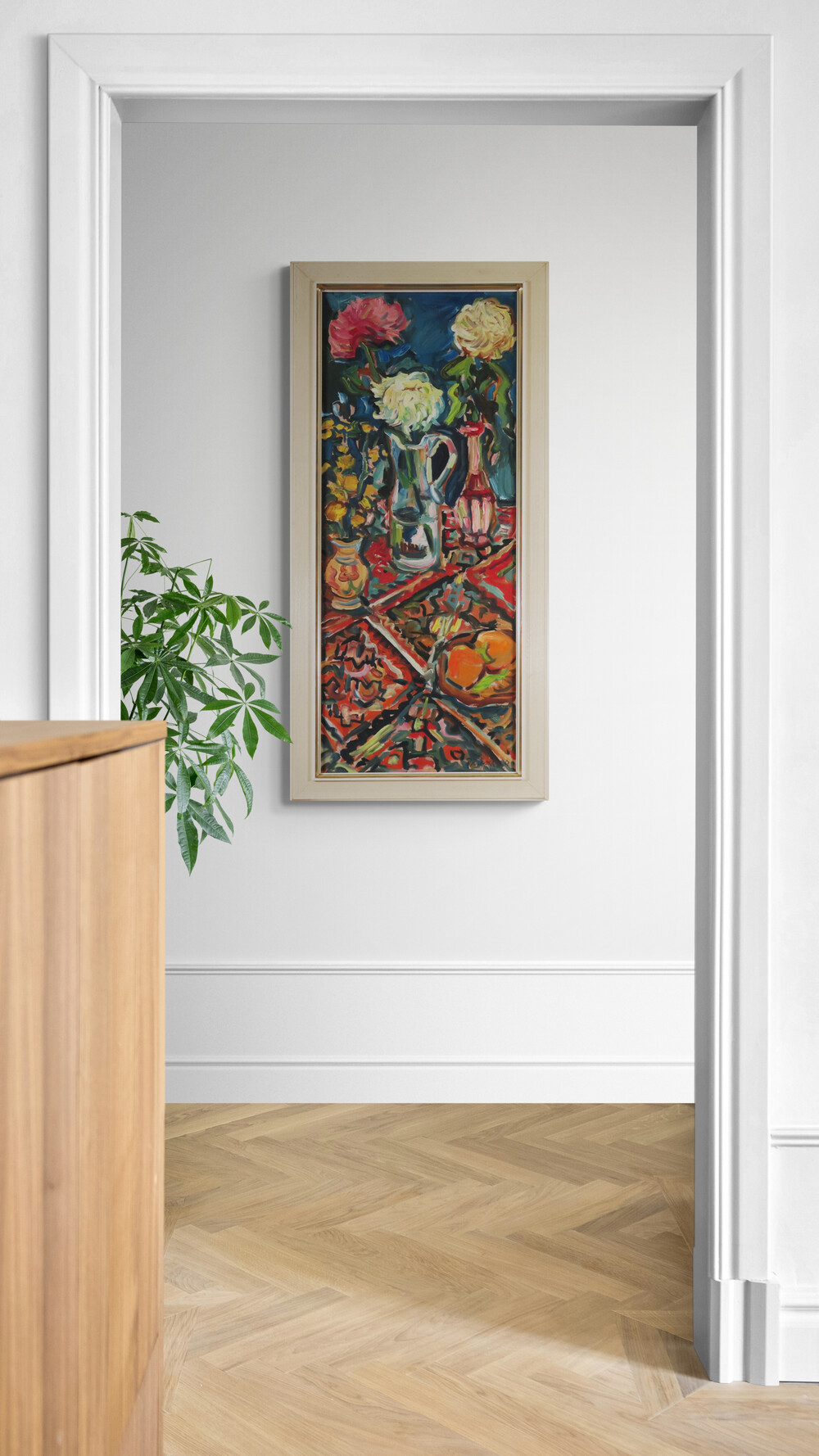 - Rozmery: 121 x 45,5 cm, s rámom: 136 x 61 cm