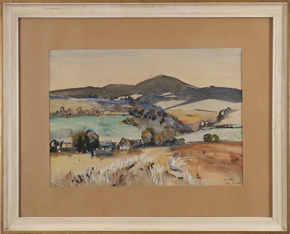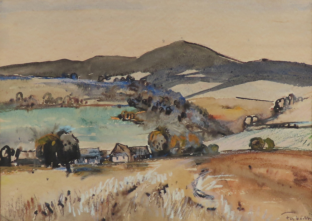 23 000 Sk,- Pohľad na dedinu.Tempera na kartóne, 45 x 47 cm. (DARTE - 20.6.2007)
