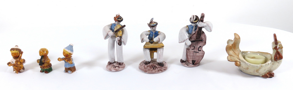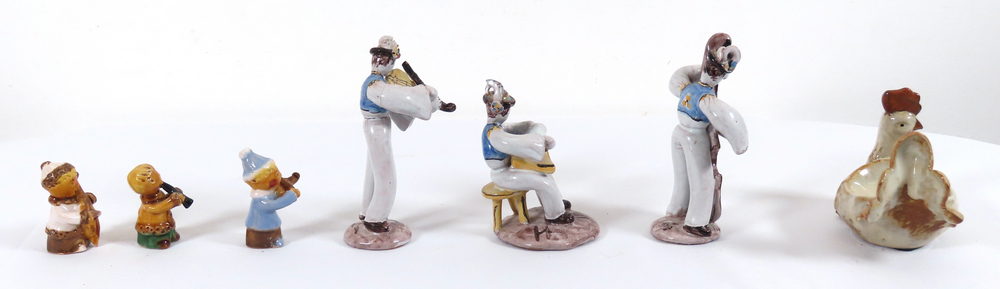 6 ks hudobníkov - 1 huslita poškodený na hlave, 1 ks sliepočka