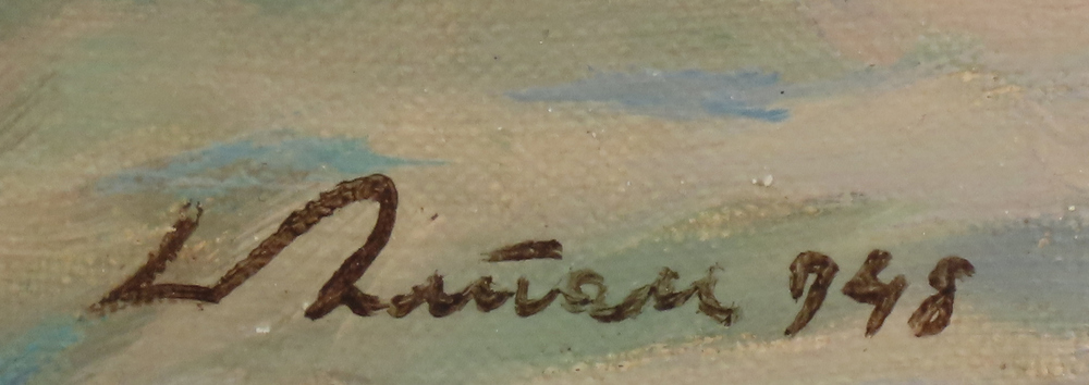 165 000 Sk - Zvoz dreva z hory. Okolo 1940. Olej na plátne. 90 x 100 cm.