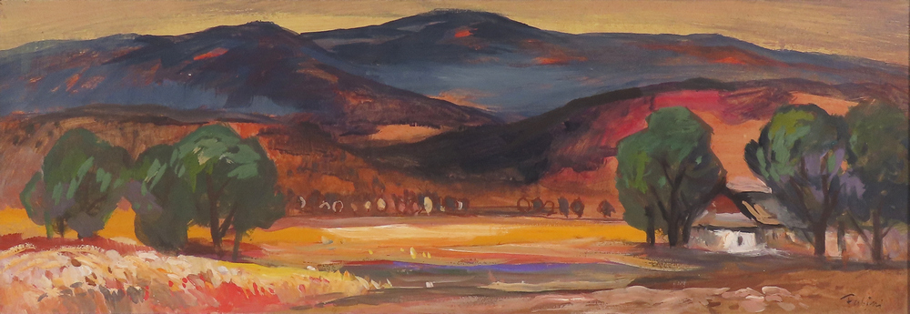 23 000 Sk,- Pohľad na dedinu.Tempera na kartóne, 45 x 47 cm. (DARTE - 20.6.2007)