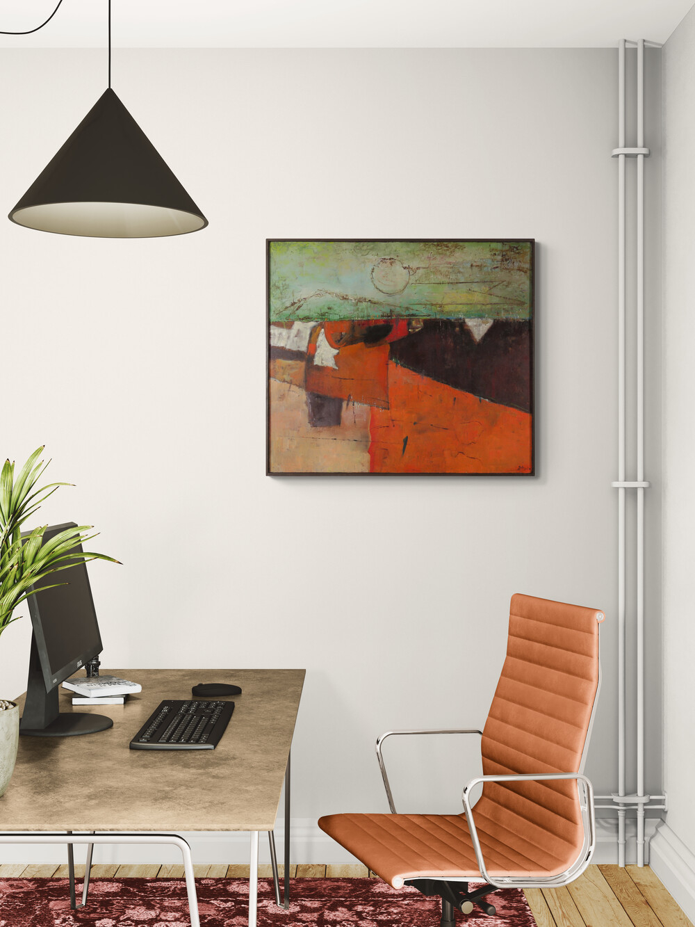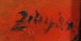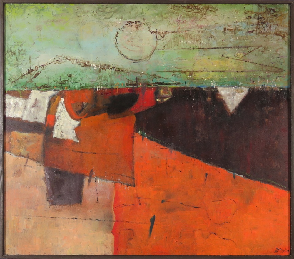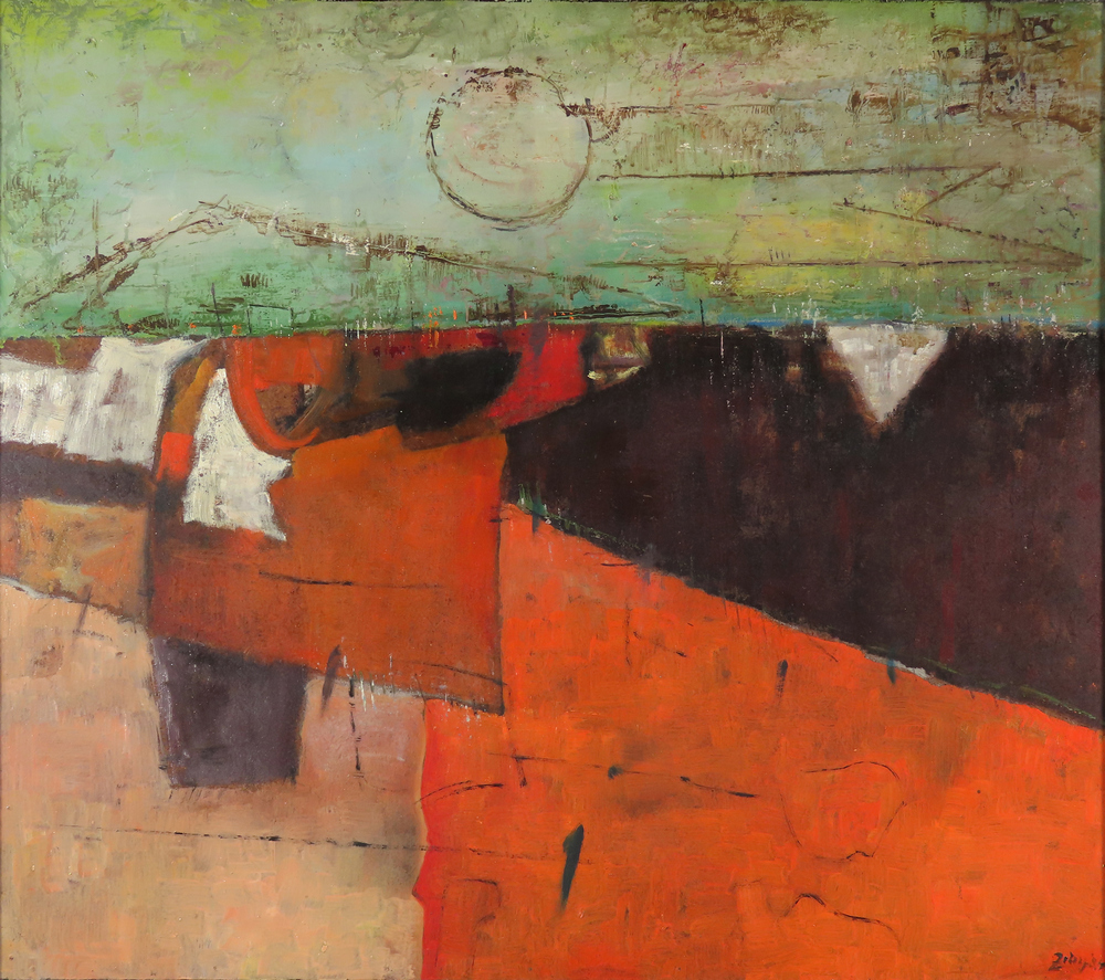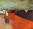 1 400 eur - Červený horizont, olej na sololite, 79,5 x 89,5 cm (DARTE-9.6.2024)
