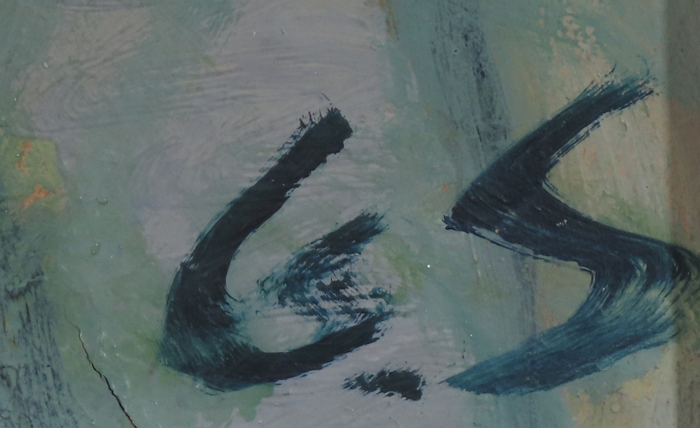 200 € - Modrá kytica. Rok 1973. Tempera na sololite. 60x40 cm.