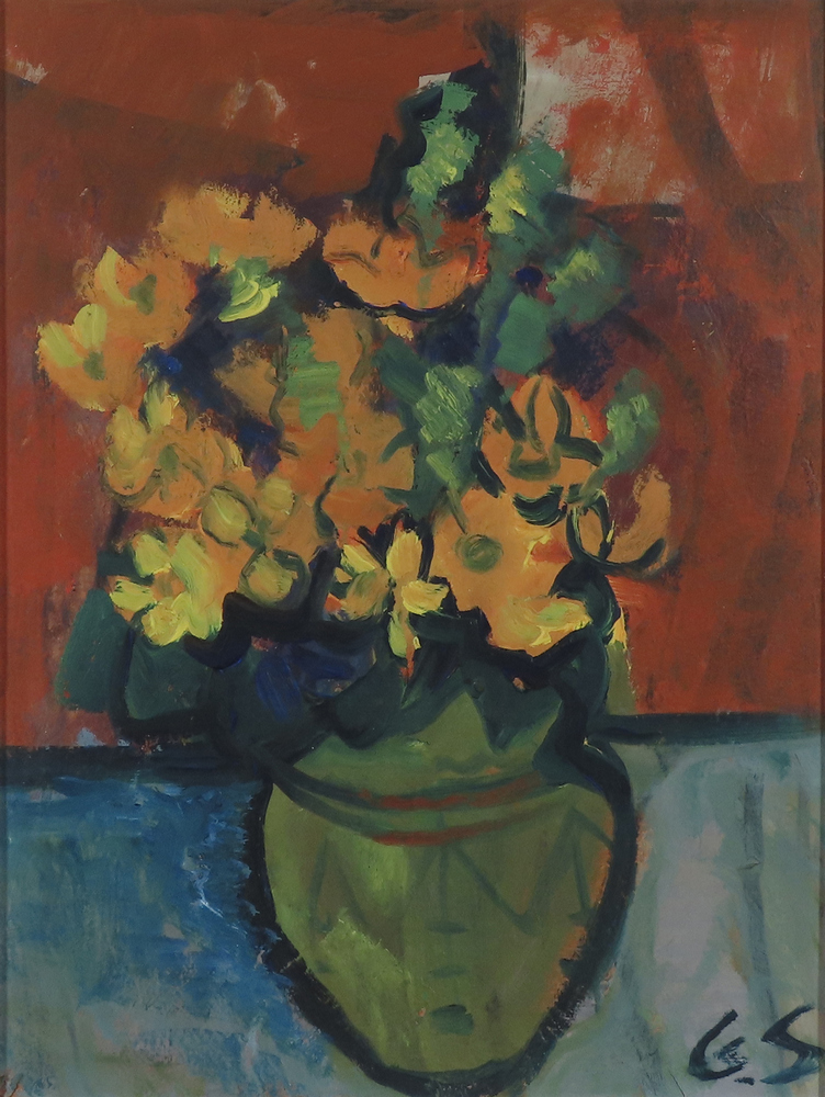 210 € - Kytica chryzantém. Rok 1967. Olej na kartóne. 65x34 cm.