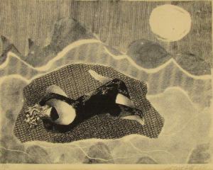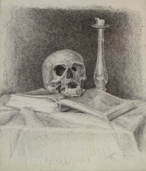 1 100 € - Sediaci akt. Rok 1975. Kombimácia kresbových techník na papieri, 39x30 cm.