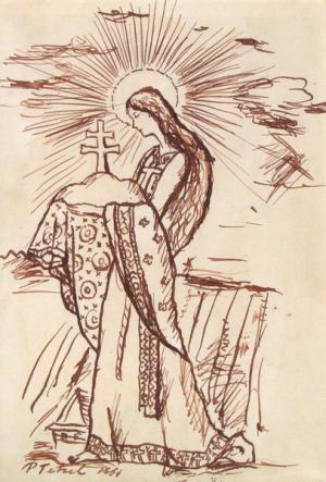 28 000 Sk - Pieta. Pastel na papieri, 20,5x15 cm.