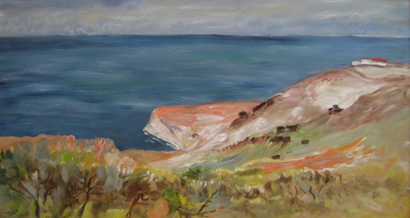 20 000 Sk,- Dedina. Olej na preglejke, 30 x 60 cm. (DARTE - 29.1.2006)