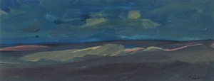 20 000 Sk,- Dedina. Olej na preglejke, 30 x 60 cm. (DARTE - 29.1.2006)