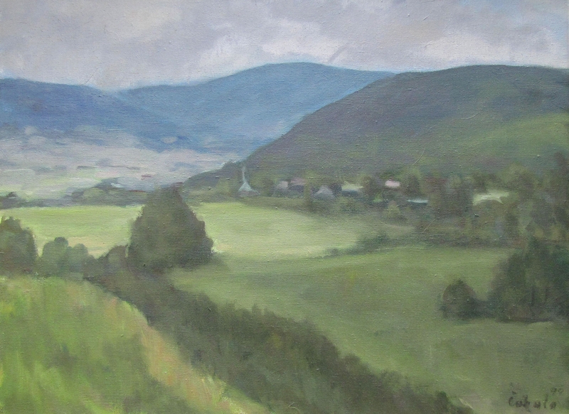 12 000 Sk - Nad dedinou. Olej na plátne, 60 x 80 cm (DARTE - 25.6.2006)