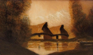2 058,02 € - Pri rieke Poprad. Okolo 1910. Olej na plátne. 69 x 75 cm.