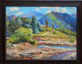 Dielo „ Horská rieka “ je ďalším typickým krajinársky dielom majstra Bokšaya zo 60- tych rokov jeho tvorby ( 1964 r.). Jozef Bokšay maľoval tieto témy krajiniek a parkov „ dľa duši “ ( veľmi známe sú jeho podobné diela : Vid na selo Dračiny, Vid na dolinu Latoricu, Vid na chatu rybalki... ) a práve tieto jeho diela majú fantastickú – realistickú farebnosť, ktorú sa snažia dosiahnuť všetci jeho následníci a ktorá je typická pre celú ukrajinskú školu maliarskeho umenia dodnes. Nikdy sa nebál kombinácie farieb , ktoré sú práve pre zakarpatské maľby veľmi typické. V konečnom dôsledku jeho práce pôsobia optimisticky - až ukľudňujúco a perfektne zvládnutý kolorit i technika témy aj v tomto diele jasne dokazuje, že ide o špičkového umelca neorealizmu.