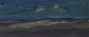 20 000 Sk,- Dedina. Olej na preglejke, 30 x 60 cm. (DARTE - 29.1.2006)