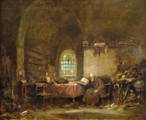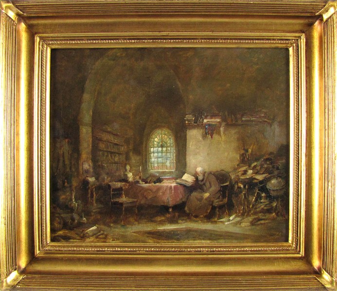 1 050 € - Učenec v knižnici. Okolo 1920-30. Olej na plátne.41 x 50 cm.