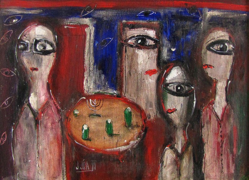 Josef Jíra (*1929-†2005) Narozen 11.10.1929 v Turnově. Studoval na odborné šperkařské škole v Turnově v oddělení rytí drahokamů. Studium na AVU v Praze zahájil v přípravce u K. Mináře, po roce studoval u M. Holého (1946 - 1949). V roce přijetí na AVU se stal členem reprezentačního družstva lyžařů. Od 1955 ilustruje. 1958 spoluzakládá tvůrčí skupinu M 57 (L. Karoušek, V. Karoušek, J. Novák, F. Peterka, R. Plachta, M. Preclík, J. Rada, V. Tesař, M. Truksa). Od 1987 člen Nové skupiny. 1989 se připojil k iniciativě kulturních pracovníků za propuštění V. Havla a ostatních nespravedlivě vězněných. 1992 otevřel v půdních prostorách Boučkova statku V Malé Skále galerii výtvarného umění, kde shromáždil sochy, obrazy a grafiku více než osmdesáti našich autorů 20. století. S P. Ulrychem vydal v nakladatelství Paseka Deníky malíře srdcem (1997), svérázný cestopis z let 1963 - 1997, kde vedle výtvarné zkratky zaujme i zkratka literární, expozice myšlenek, umocněných kresbou a koláží. Zastoupen ve sbírkách NG Praha, MG Brno, AJG Hluboká nad Vltavou, Galerie hlavního města Bratislavy, GVU Ostrava, OG Olomouc, GU Karlovy Vary a jinde. In: Slovník Českých a slovenských výtvarných umělců, Ostrava, 1999